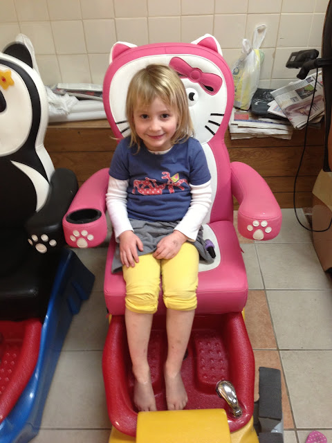 Miller and I have enjoyed squeezing in a little girl time. This was her first real pedicure- soaking, lotion, and all. Needless to say, she loved it.
